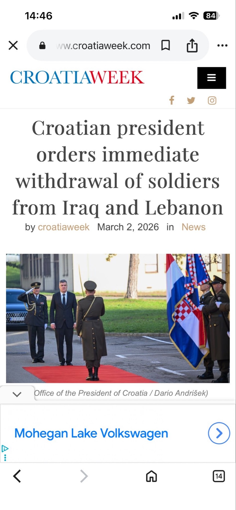 1. Croatia pulling out of NATO missions
