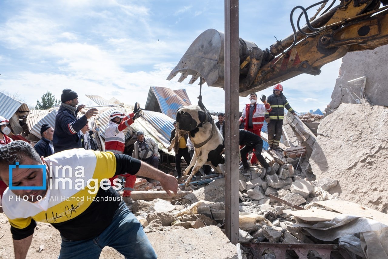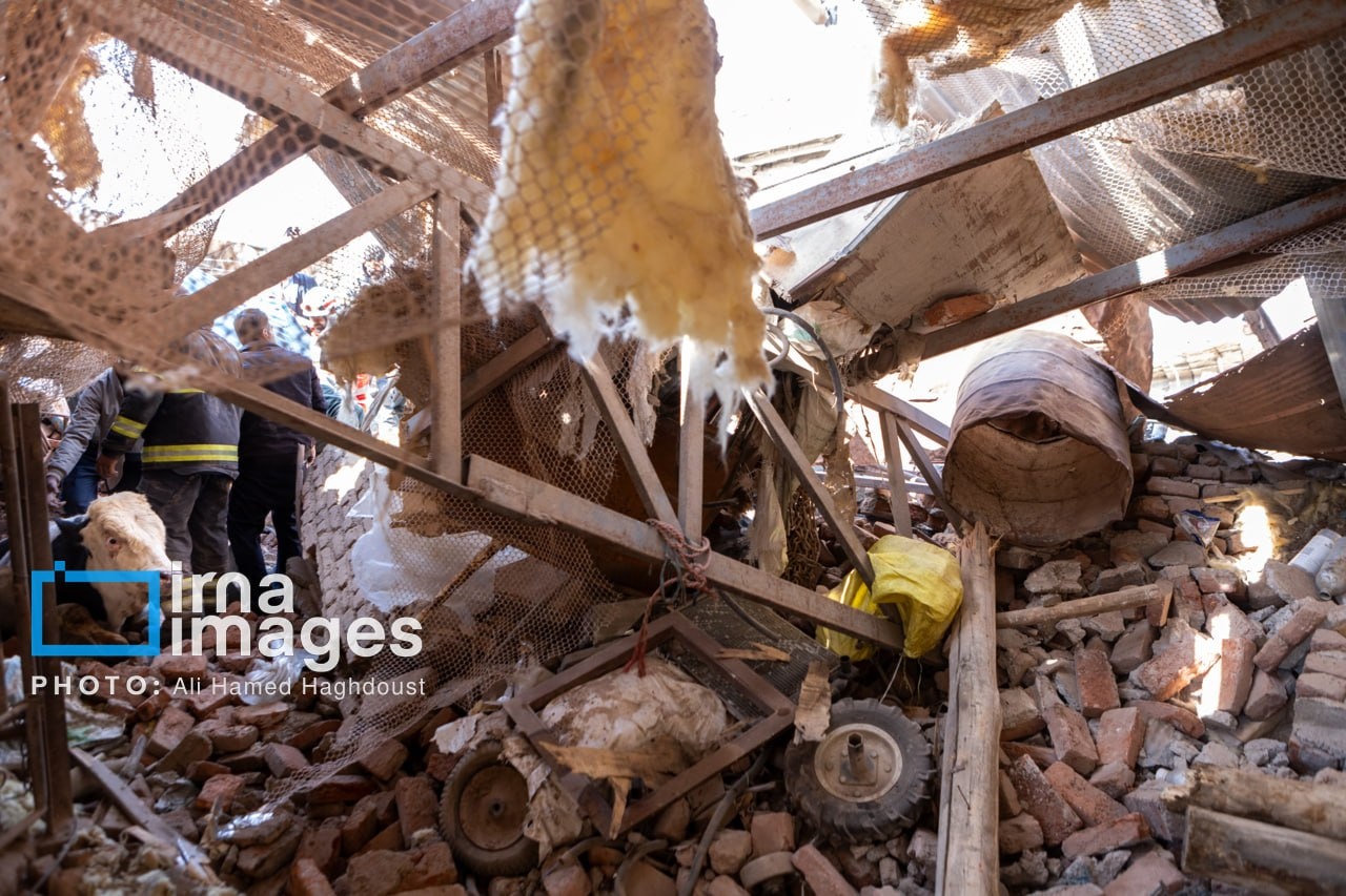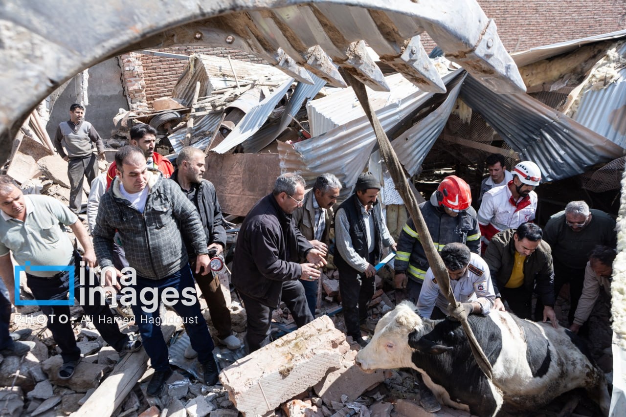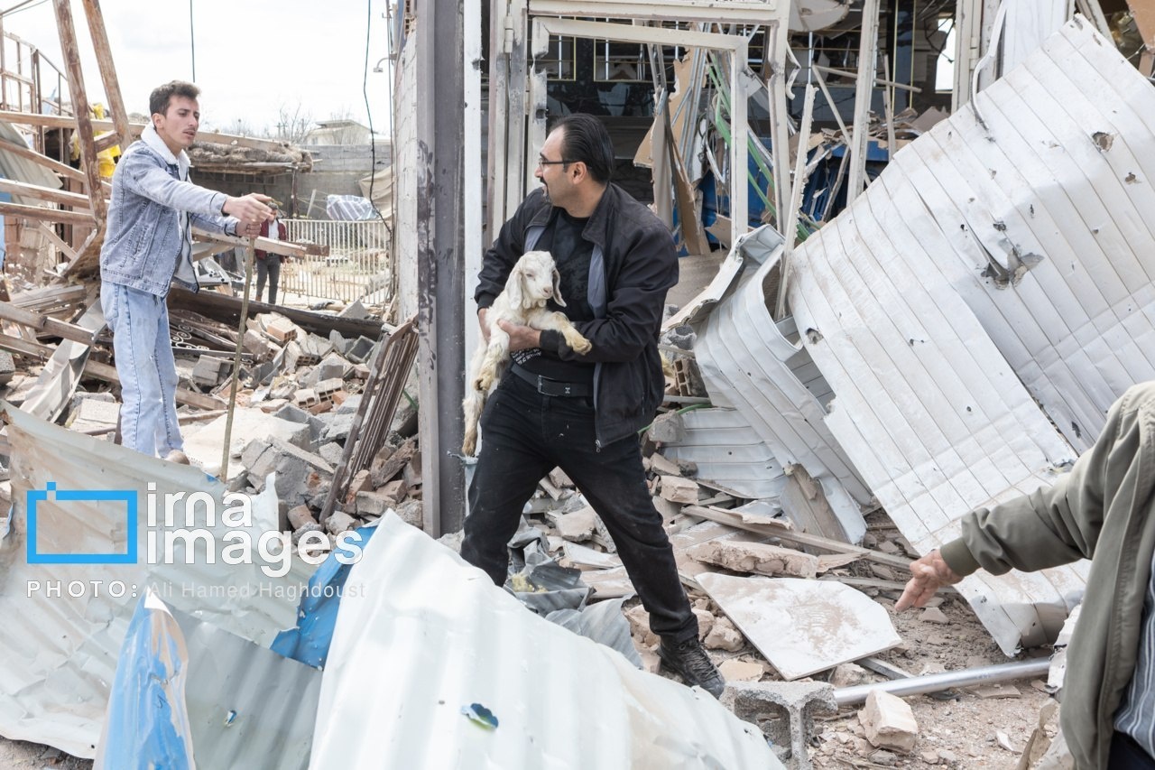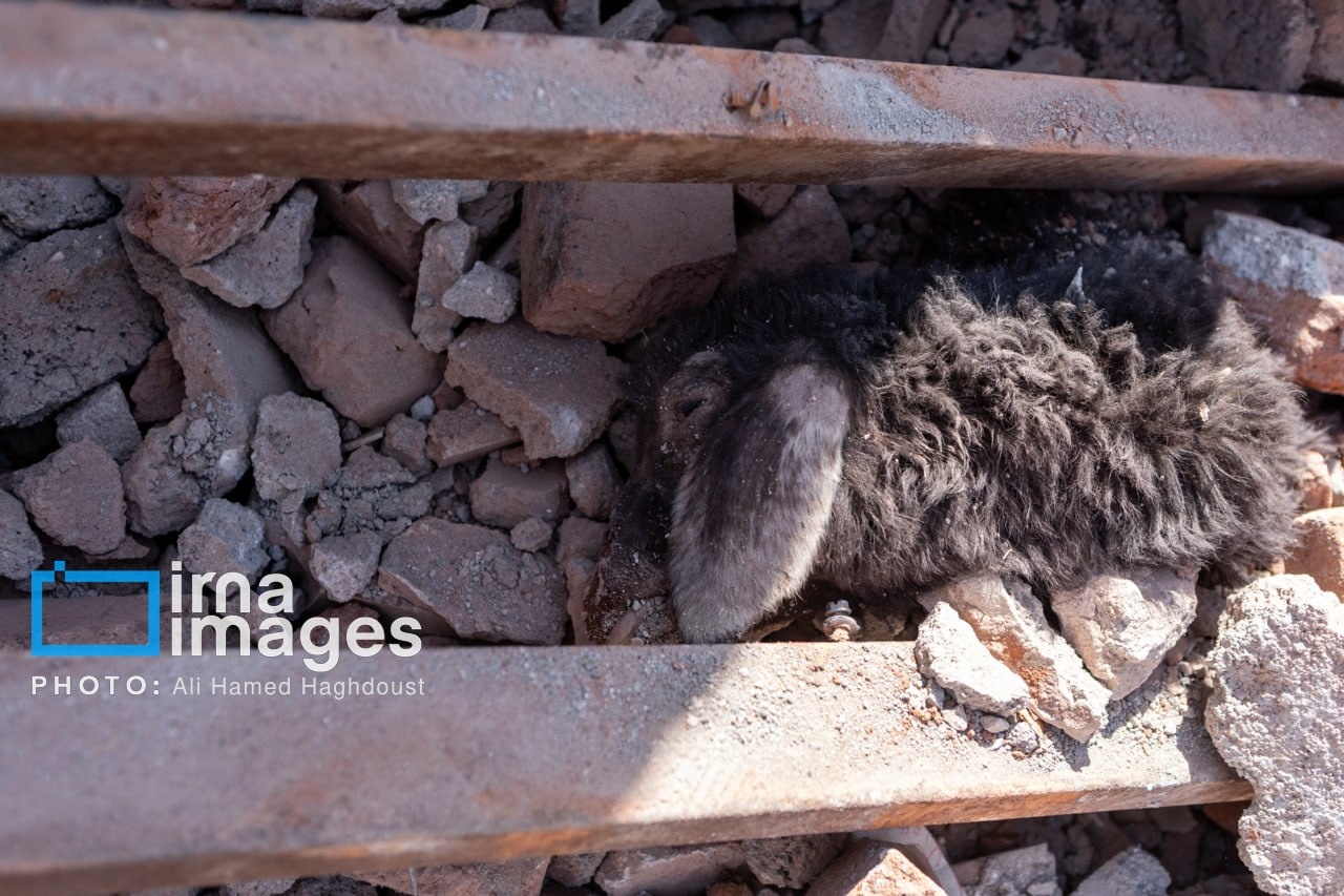 A livestock farm near the northwestern Iranian city of Tabriz was damaged in a US-Israeli attack, with rescue teams working to save animals trapped under the rubble.