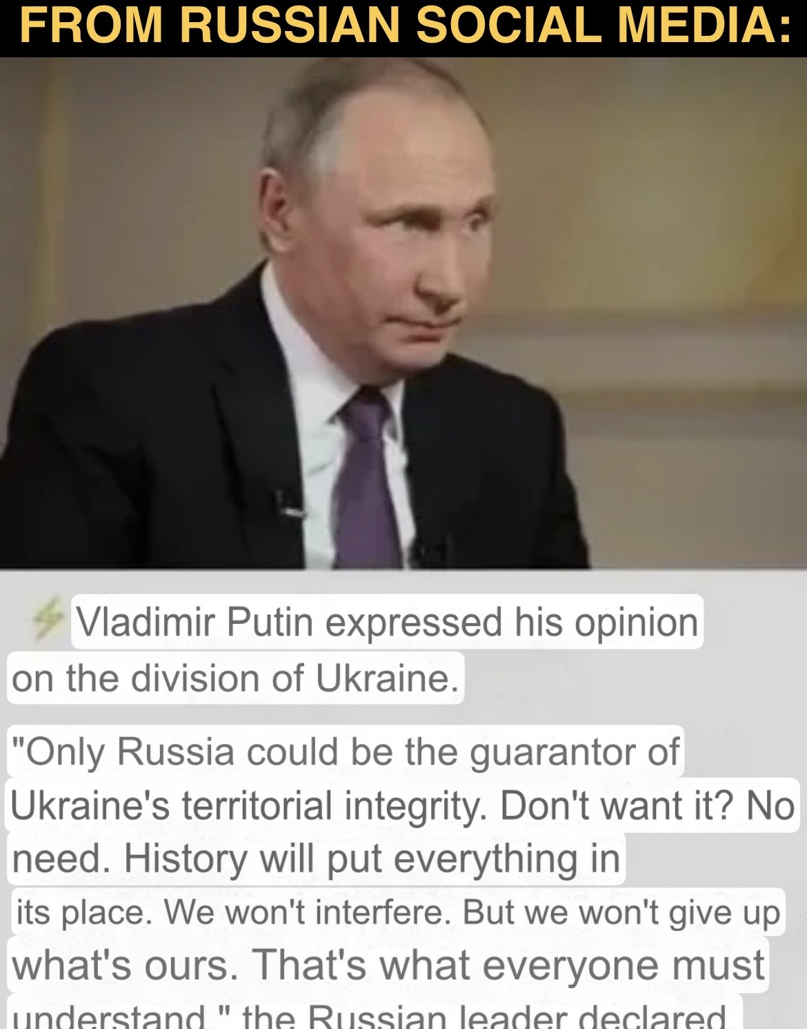 However I wanted to give you a "peace" of my mind concerning the "Piece" or piss, as Elensky calls it, as this thing fell to pieces before it even happened.