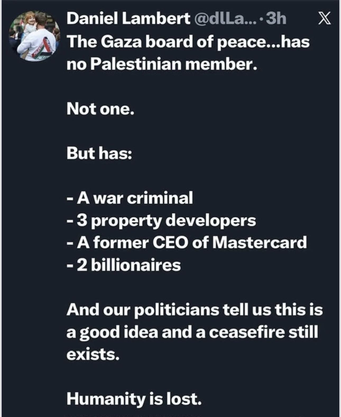Further to my post of a few hours ago re Evil Lunatic Trump’s “Board of Peace”, came across this on X -