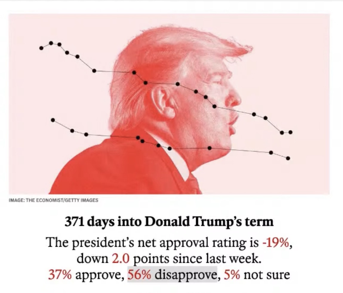 Trump knows about the disastrous slide in his approval rating. And yet he continues his domestic and foreign policies that are causing this slide. Why?